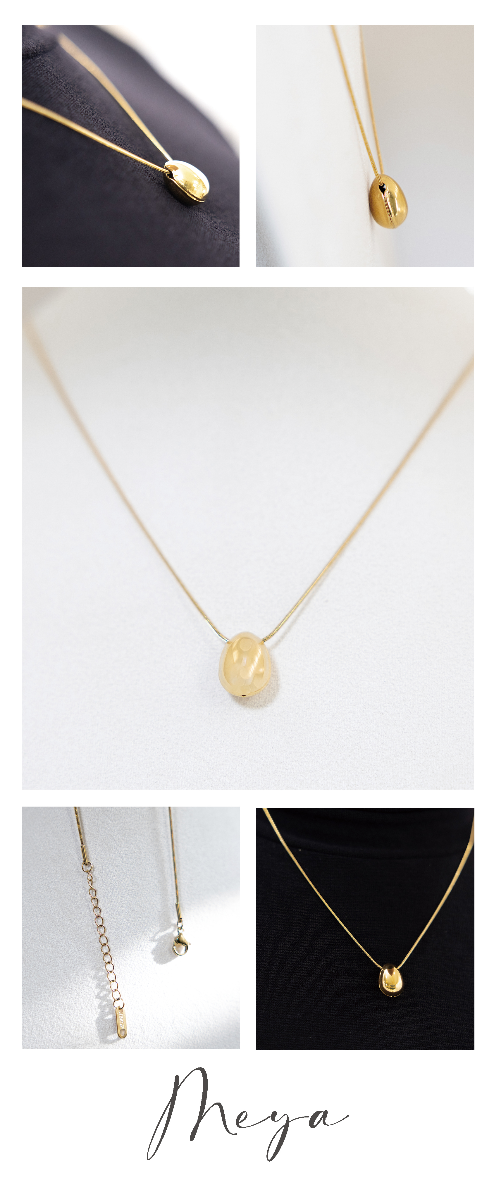 목걸이 橢圓珠墜飾細蛇鍊 / 金色