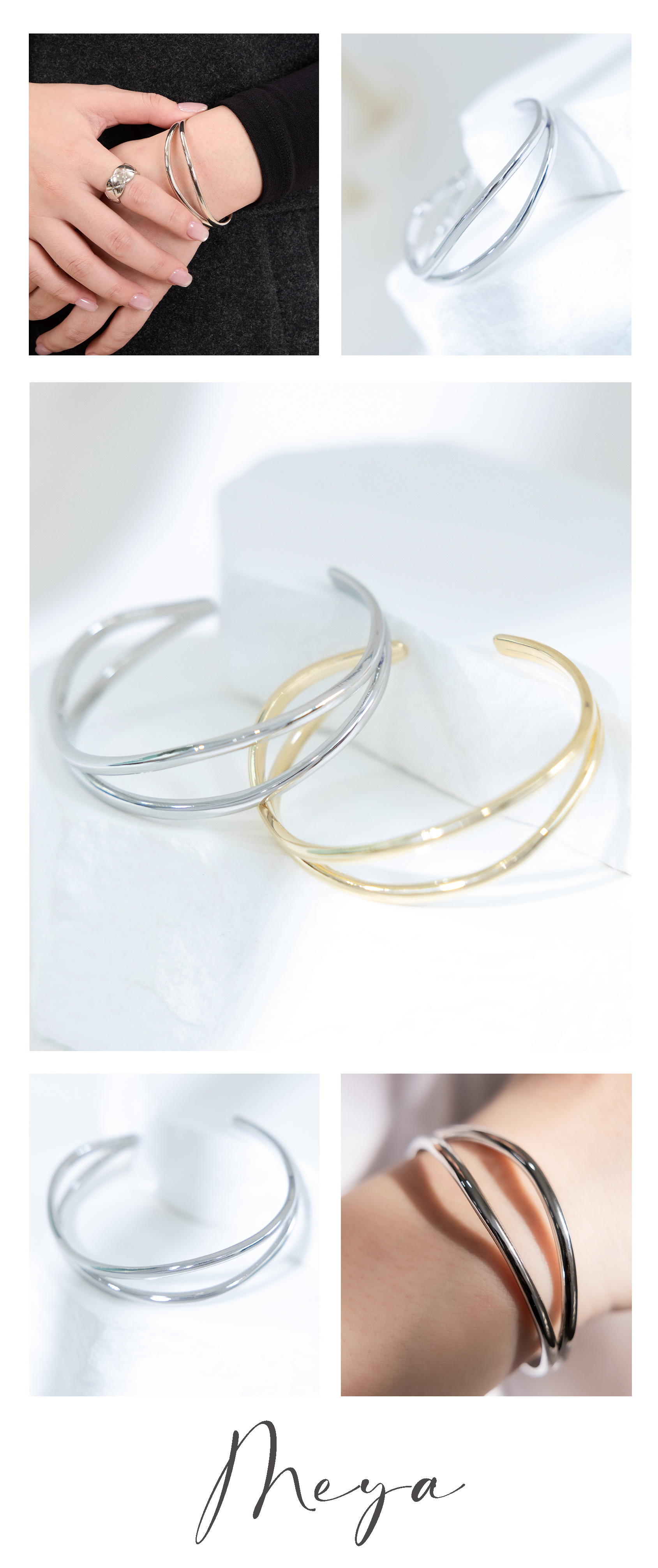 팔찌 兩線條並列開口式手環 / 銀色