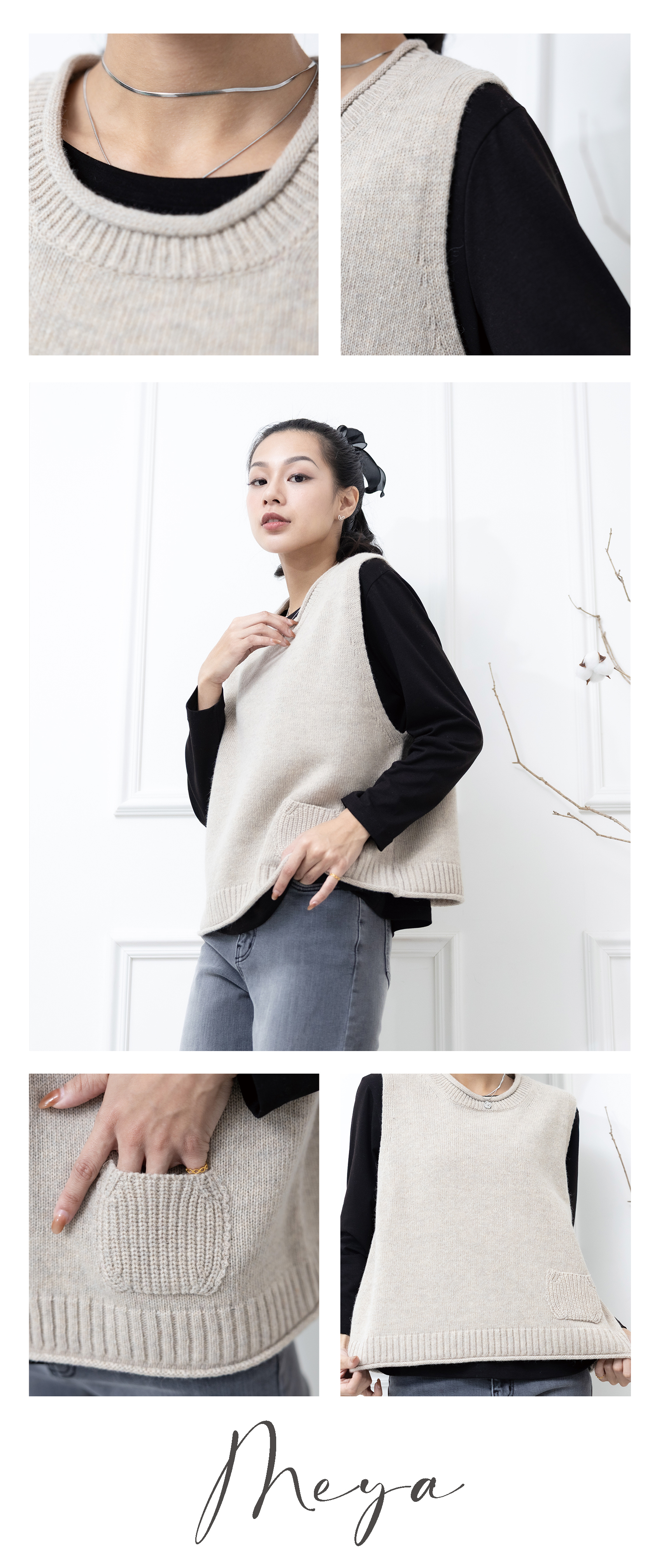 반팔 圓領背心 領口下擺捲邊設計 / 奶茶色