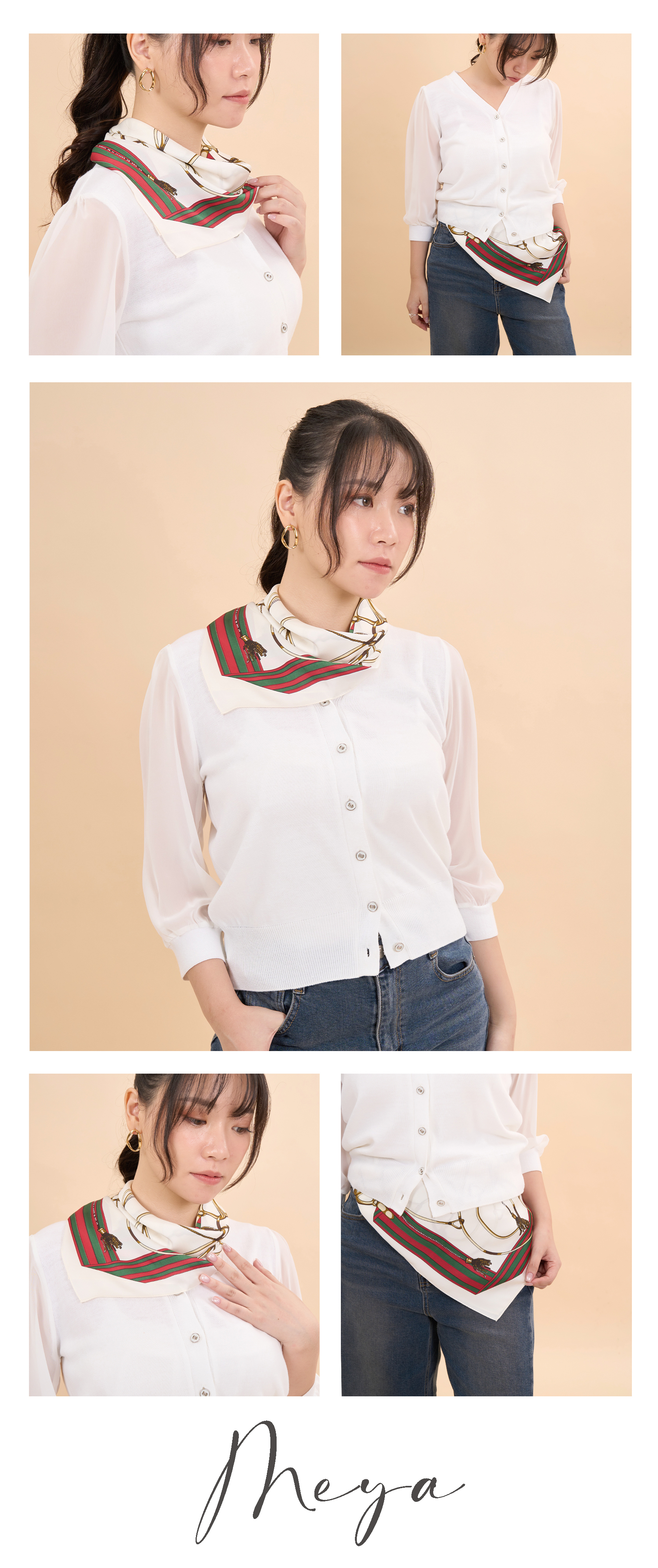 紅綠緞帶框 金色鏈條 方巾 / 米色底