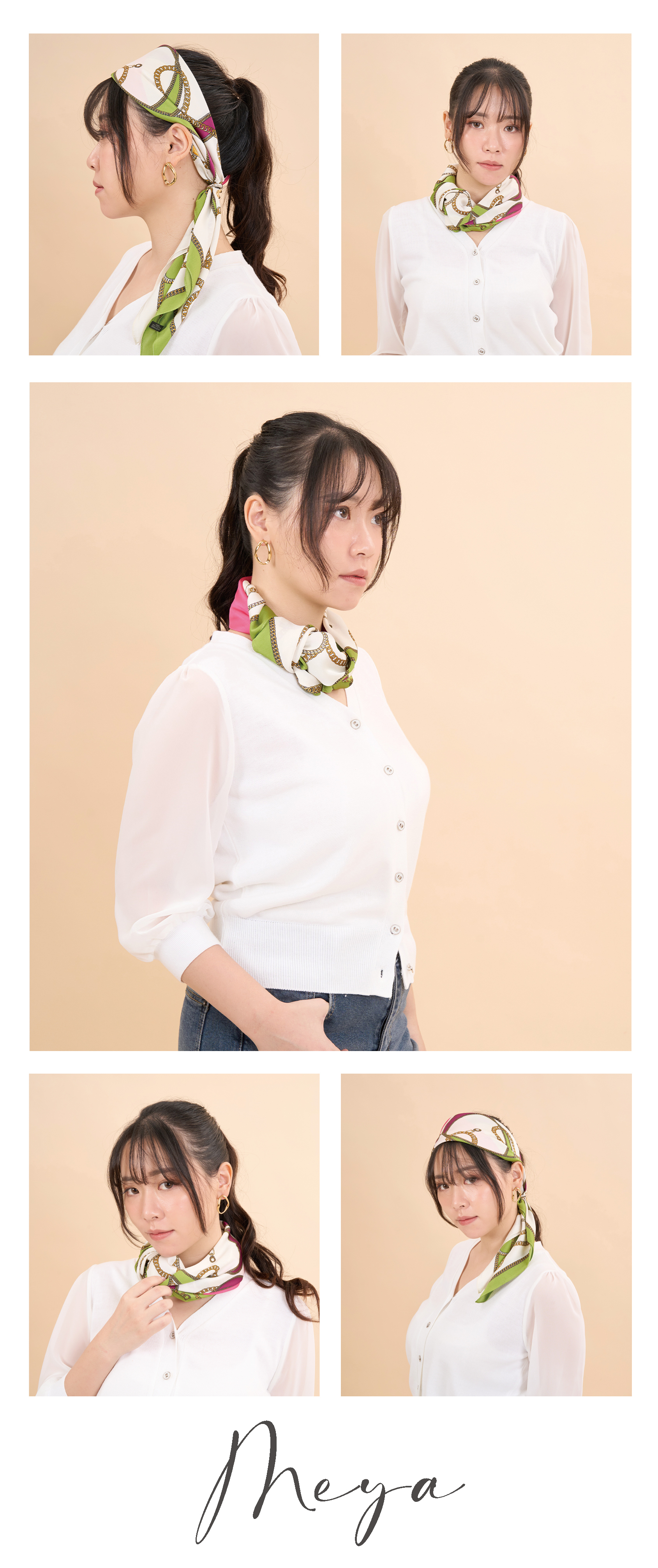 半塊粉色方形 中間多種鏈條交錯 方巾/ 淺米色淺綠色底